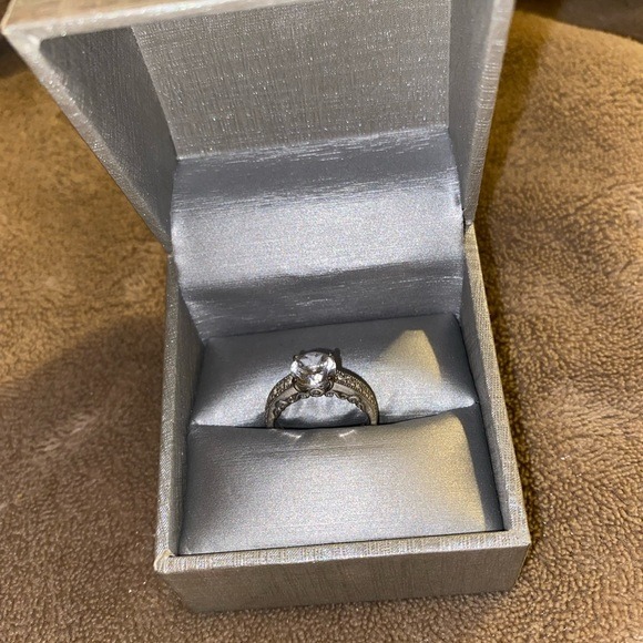 Zales diamond ring size 7! I have always gotten it cleaned at Zales but I’m selling it because I don’t need it. All diamonds are in their place and none are missing. I currently have a spacer on it because it was too big for me but it can be removed!